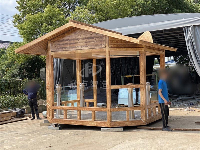 吸煙亭實(shí)拍:防腐木材質(zhì)