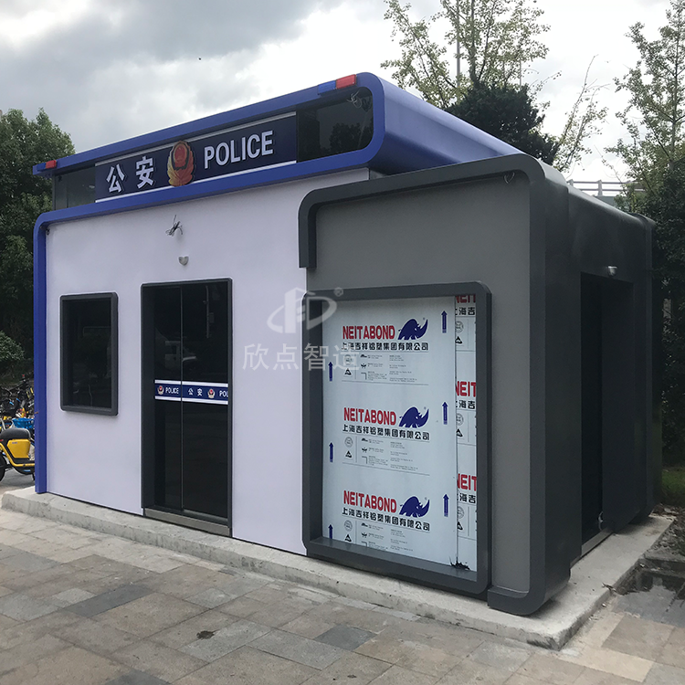 2、治安崗?fù)づ渲糜校汗ぷ髋_(tái)、插座、配電箱、開(kāi)關(guān)、LED燈等,根據(jù)要求還可以加配:監(jiān)控、空調(diào)、辦公椅、文件柜、LED顯示屏、警燈、警用裝備等。使用空間相對(duì)寬闊。崗?fù)?nèi)外墻板采用金屬環(huán)保板材,無(wú)毒無(wú)異味。工廠預(yù)制生產(chǎn)成品生產(chǎn)送貨上門,真正做到拎包入住。